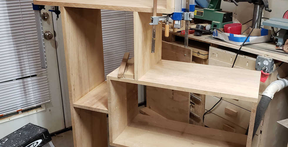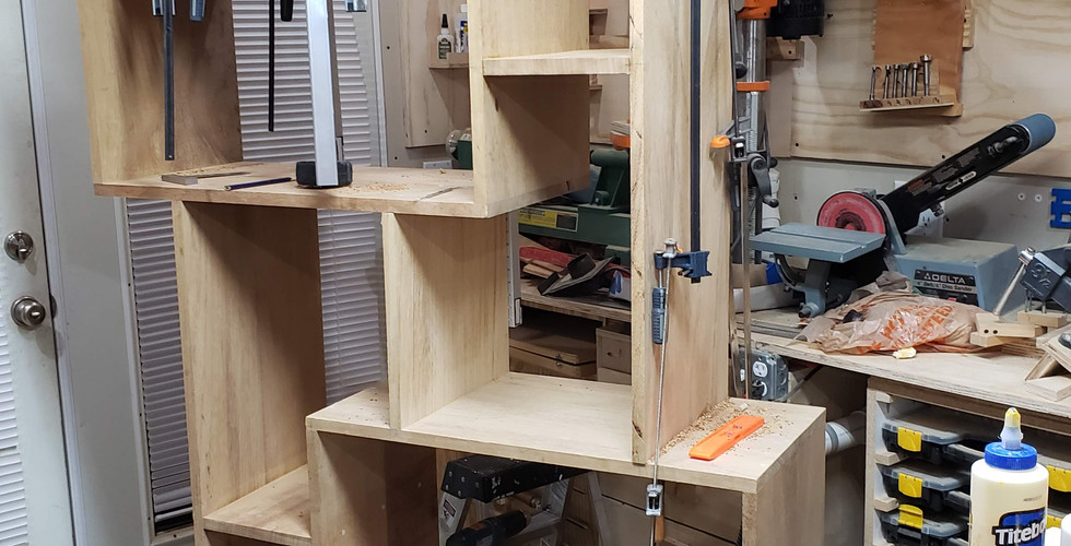 I have been working on this bookshelf for the last few weeks. It is all made from Iroko, also known as African teak. It took some time to joint the boards, glue them together then plane them flat. After that I had to cut everything to length and assemble it a few parts at a time. This bookshelf is a little over 3 feet wide by 7 feet tall with deep 16 inch shelving. Check out the Gallery and I will be adding final pictures soon after I finish it using Odie's Oil.